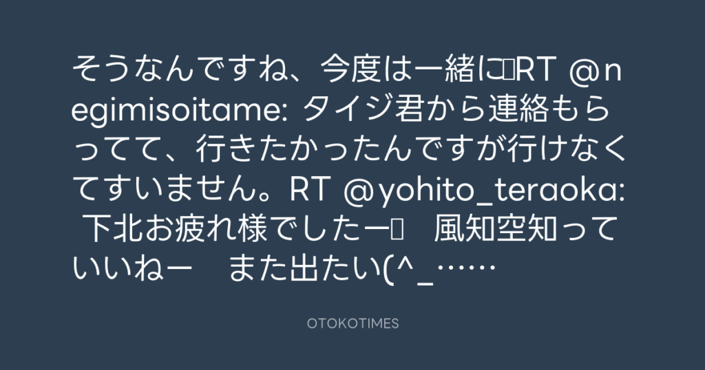 そうなんですね、今度は一緒に♪RT @negimisoitame: タイジ君から連絡もらってて、... -