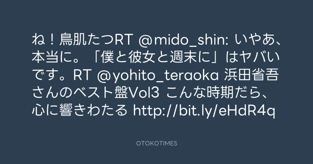 ね!鳥肌たつRT @mido_shin: いやあ、本当に。「僕と彼女と週末に」はヤバいです。...