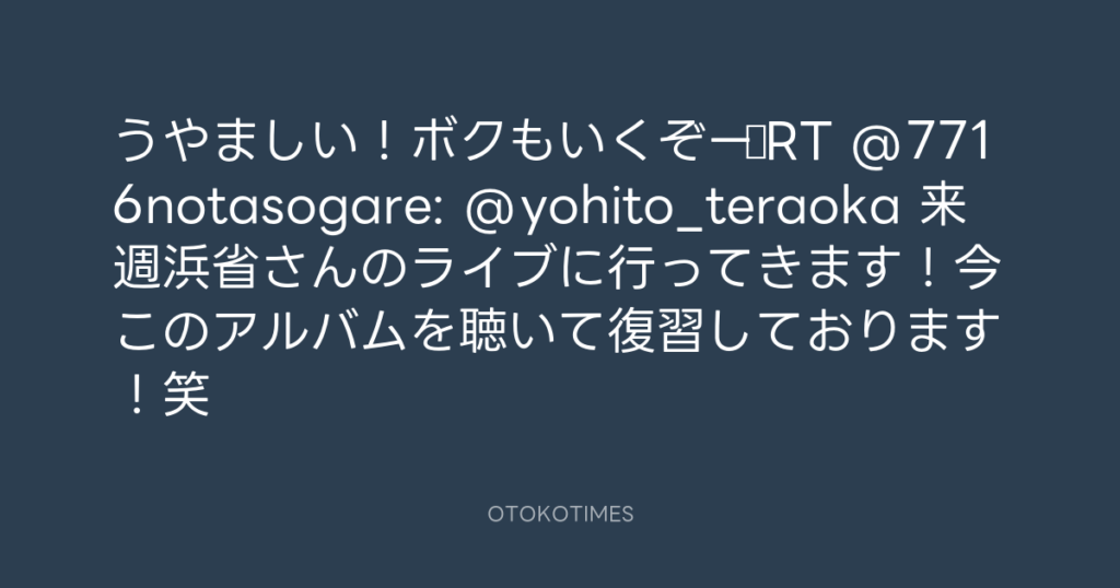 うやましい!ボクもいくぞー♪RT @7716notasogare: @yohito_teraoka 来週浜省さんの... -