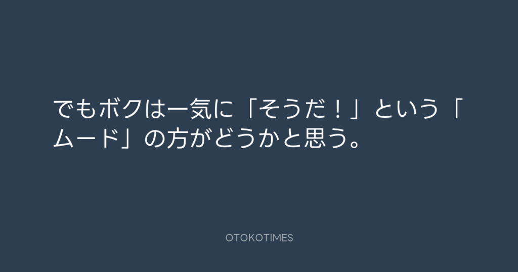 でもボクは一気に「そうだ!」という「ムード」の方がどうかと思う。 -