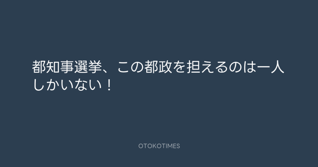 都知事選挙、この都政を担えるのは一人しかいない! -
