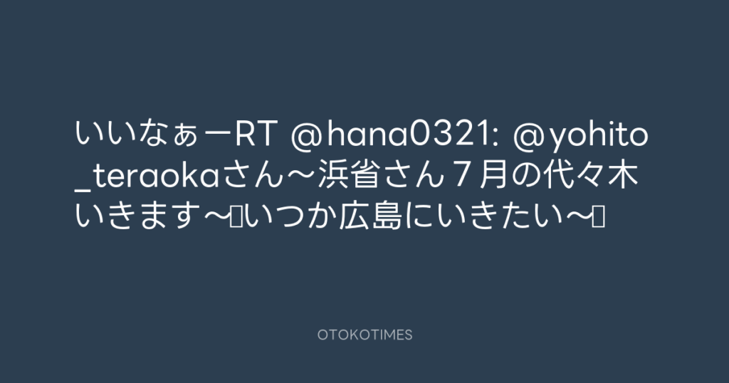 いいなぁーRT @hana0321: @yohito_teraokaさん〜浜省さん7月の代々木いきます〜☆... -
