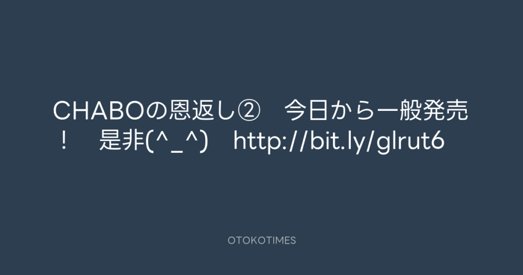 CHABOの恩返し② 今日から一般発売! 是非(^_^) http://bit.ly/glrut6 -