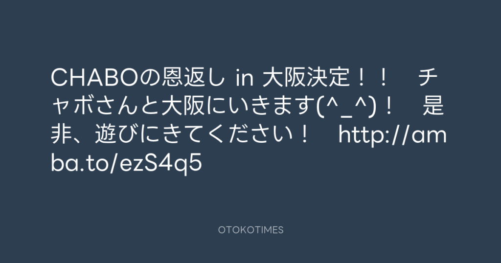 CHABOの恩返し in 大阪決定!! チャボさんと大阪にいきます(^_^)! 是非、遊び... -