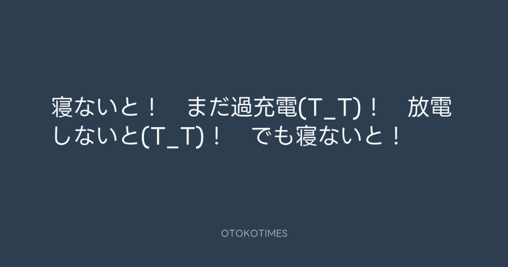 寝ないと! まだ過充電(T_T)! 放電しないと(T_T)! でも寝ないと! -