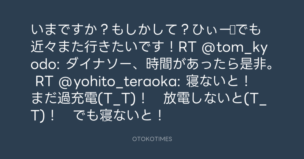 いまですか?もしかして?ひぃー♪でも近々また行きたいです!RT @tom_kyodo: ダイ... -