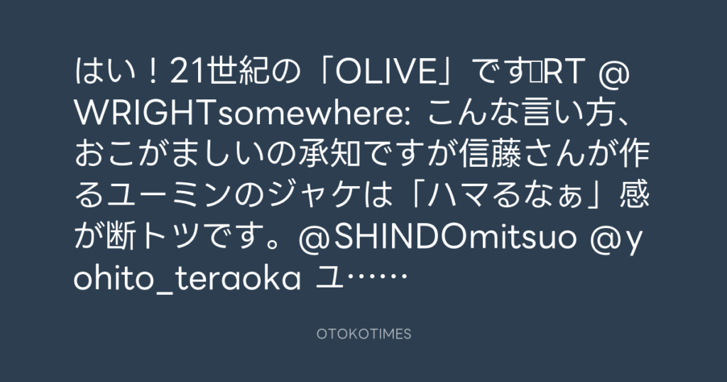 はい!21世紀の「OLIVE」です♪RT @WRIGHTsomewhere: こんな言い方、おこがましいの... -