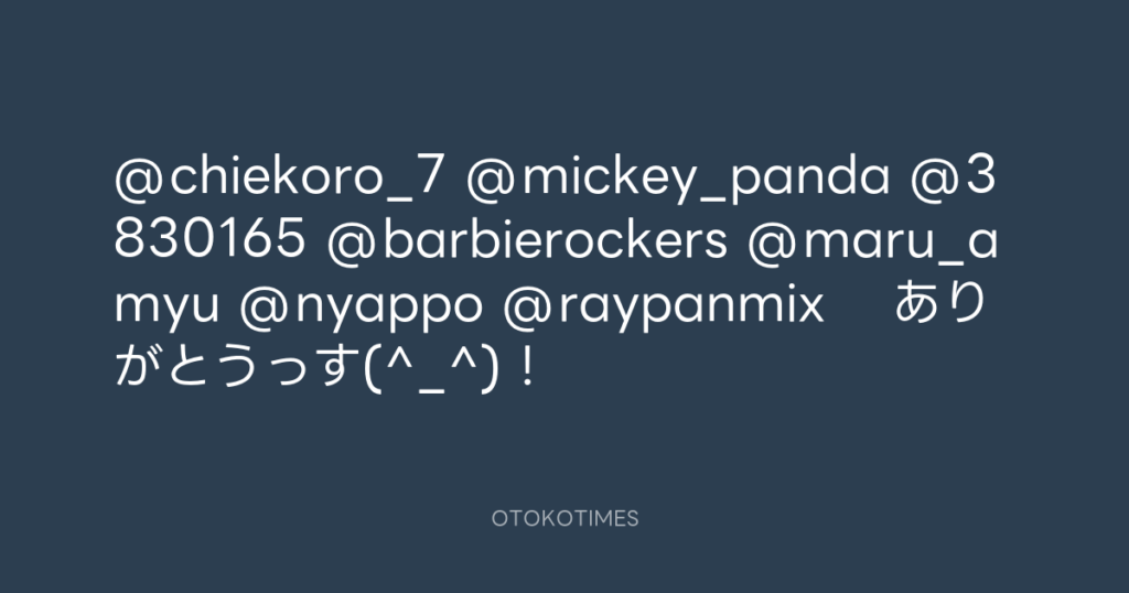 @chiekoro_7 @mickey_panda @3830165 @barbierockers @maru_amyu @nyappo @raypanm... -