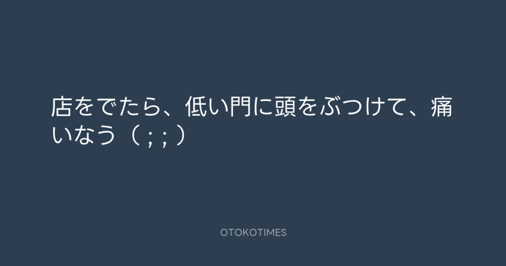 店をでたら、低い門に頭をぶつけて、痛いなう( ; ; ) -