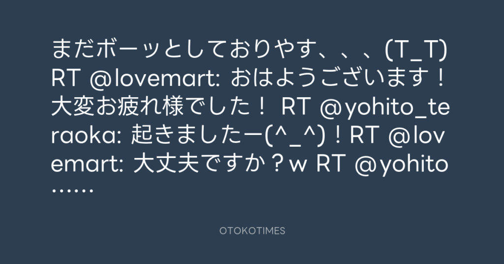 まだボーッとしておりやす、、、(T_T)RT @lovemart: おはようございます!大変お疲... -