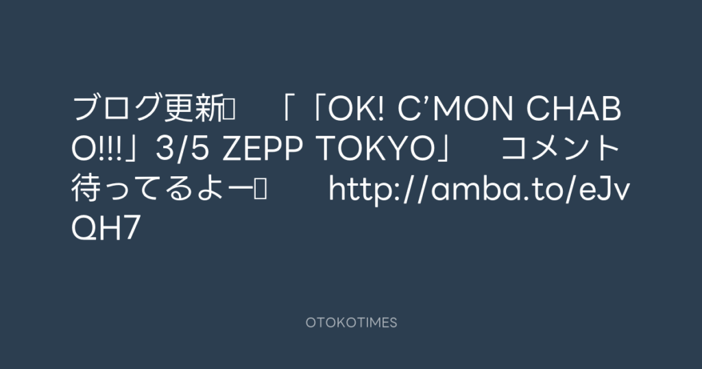 ブログ更新♪ 「「OK! C’MON CHABO!!!」3/5 ZEPP TOKYO」 コメント待ってるよー♪... -