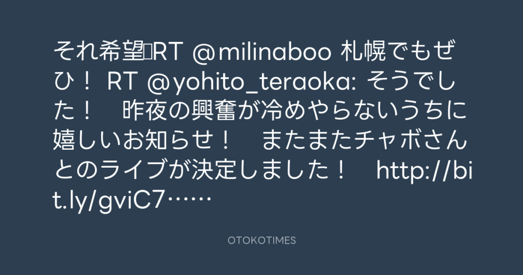 それ希望♫RT @milinaboo 札幌でもぜひ! RT @yohito_teraoka: そうでした! 昨夜... -