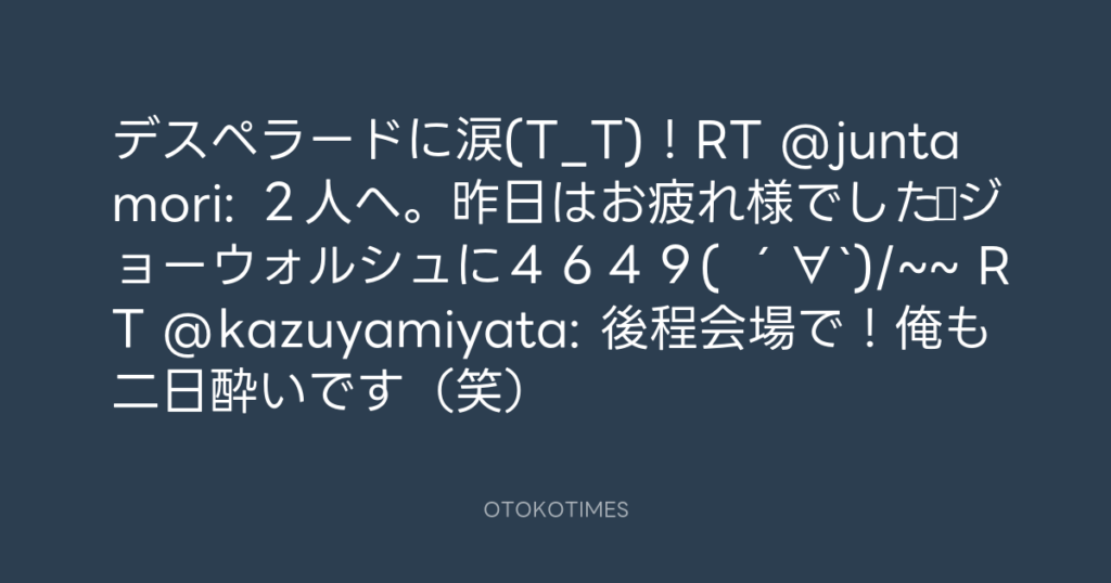 デスペラードに涙(T_T)!RT @juntamori: 2人へ。昨日はお疲れ様でした☆ジョーウォ... -