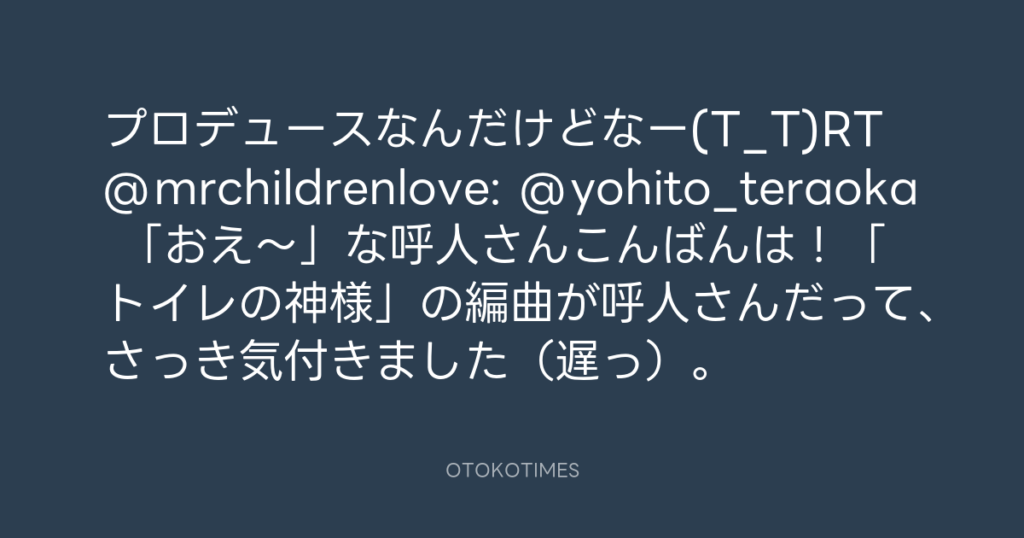 プロデュースなんだけどなー(T_T)RT @mrchildrenlove: @yohito_teraoka 「おえ~」... -