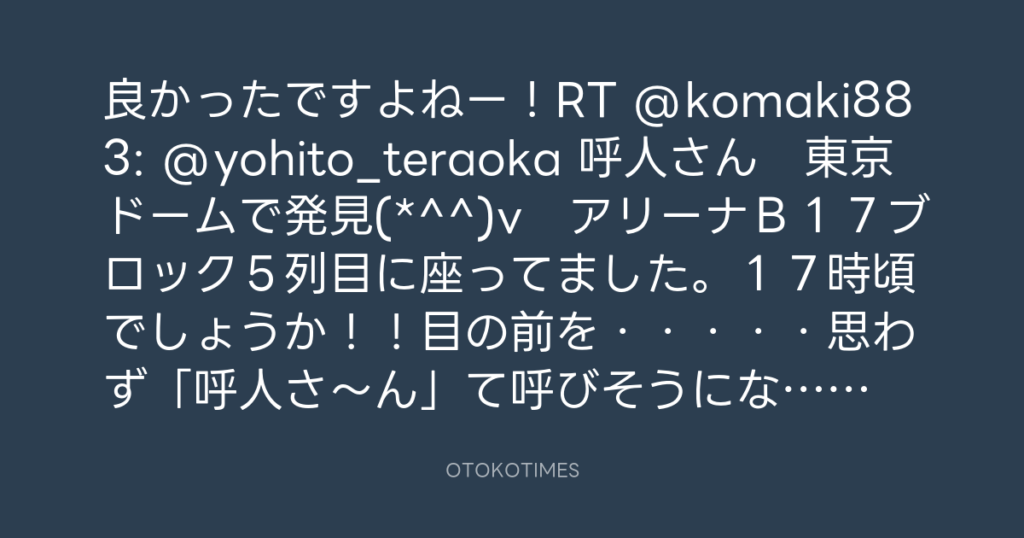 良かったですよねー!RT @komaki883: @yohito_teraoka 呼人さん 東京ドームで発見... -