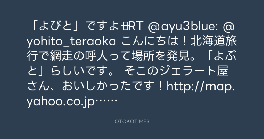 「よびと」ですよー♪RT @ayu3blue: @yohito_teraoka こんにちは!北海道旅行で網走... -