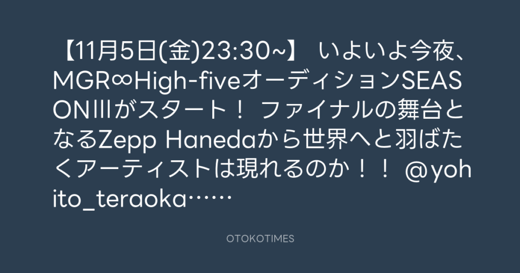 【11月5日(金)23:30~】 いよいよ今夜、MGR∞High-fiveオーディションSEASONⅢがスタ... -