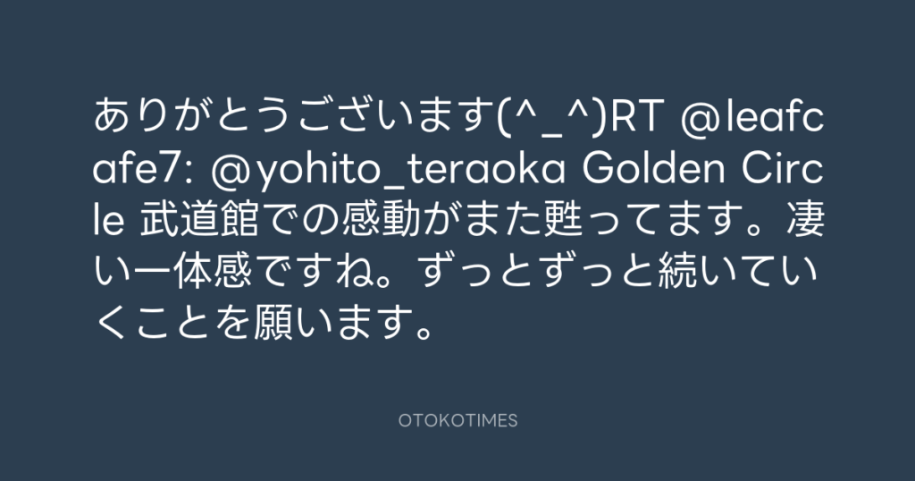 ありがとうございます(^_^)RT @leafcafe7: @yohito_teraoka Golden Circle 武道館...