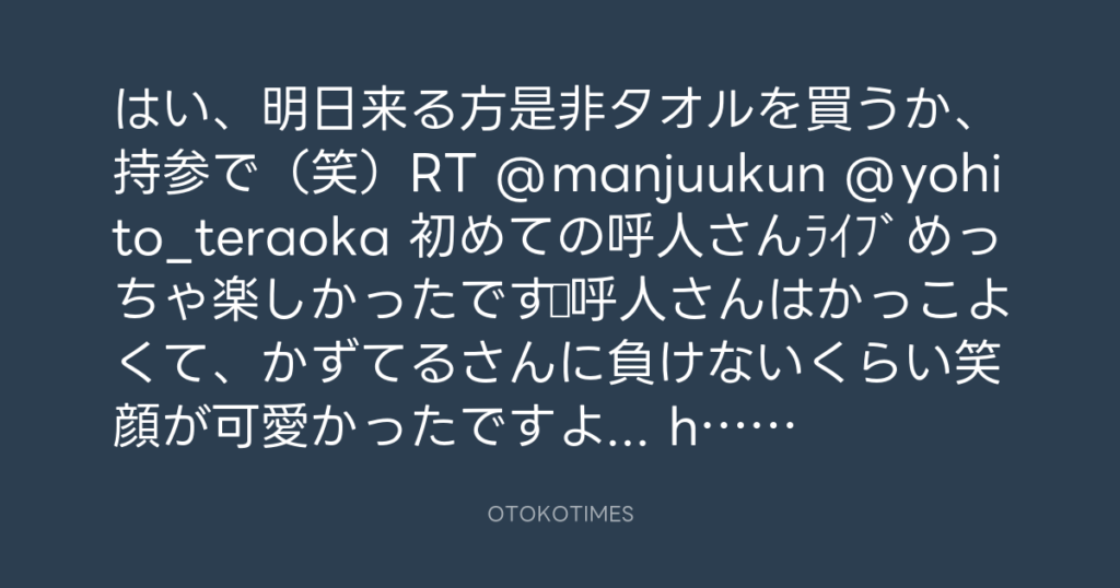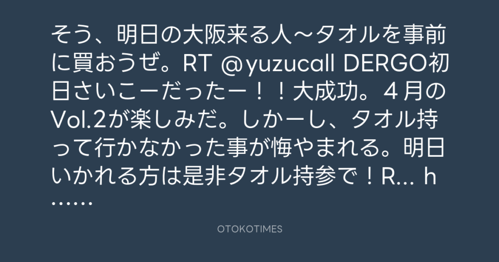 そう、明日の大阪来る人〜タオルを事前に買おうぜ。RT @yuzucall DERGO初日さいこ... -