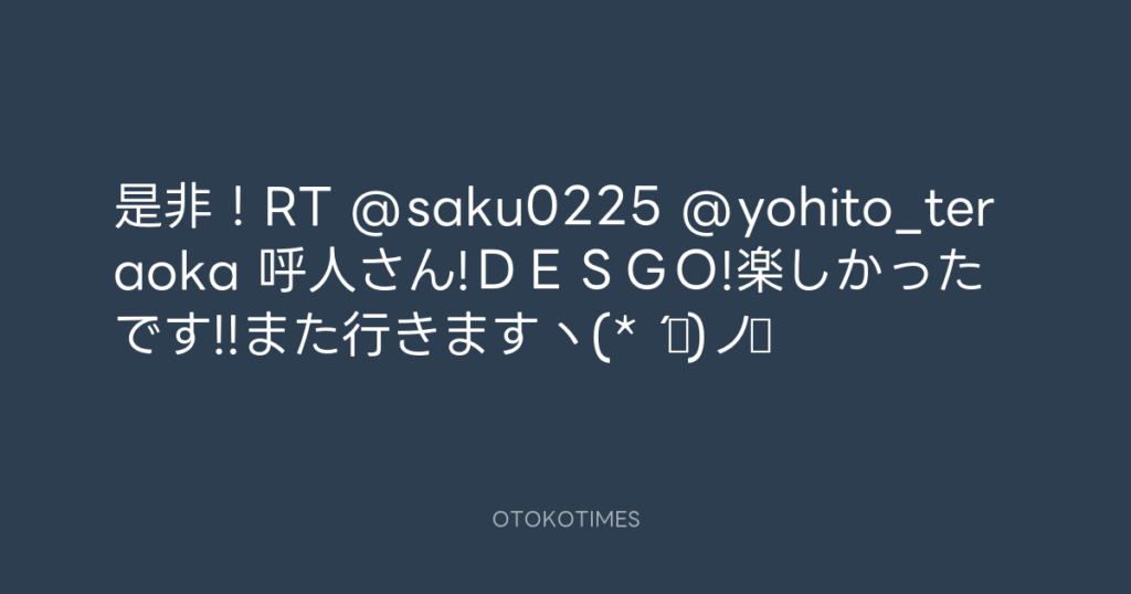 是非!RT @saku0225 @yohito_teraoka 呼人さん!DESGO!楽しかったです!!また行... -