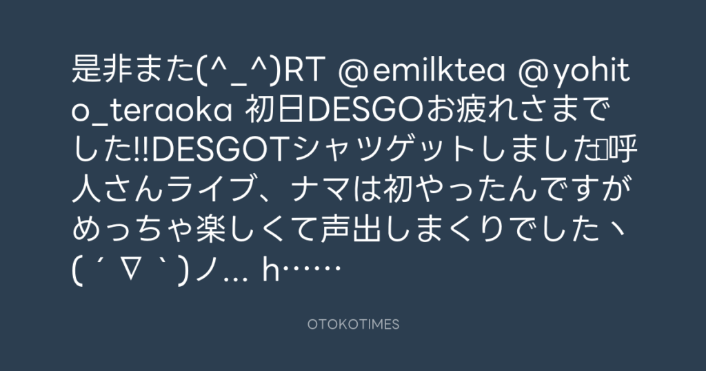 是非また(^_^)RT @emilktea @yohito_teraoka 初日DESGOお疲れさまでした!!DESGOTシ... -