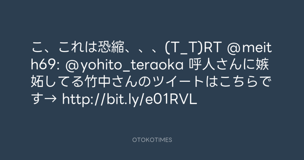 こ、これは恐縮、、、(T_T)RT @meith69: @yohito_teraoka 呼人さんに嫉妬してる竹... -