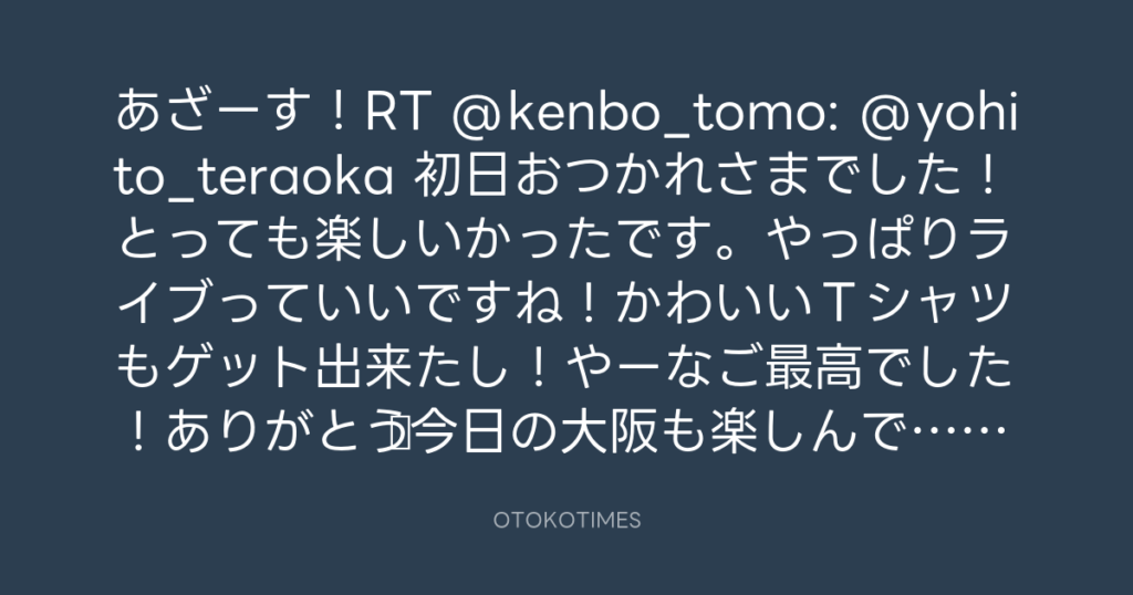 あざーす!RT @kenbo_tomo: @yohito_teraoka 初日おつかれさまでした!とっても楽... -