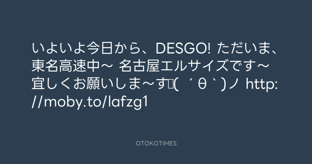 いよいよ今日から、DESGO! ただいま、東名高速中〜 名古屋エルサイズです〜 宜しく... -