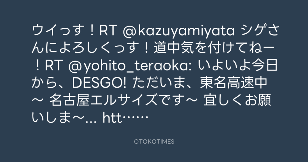 ウイっす!RT @kazuyamiyata シゲさんによろしくっす!道中気を付けてねー!RT @yo... -