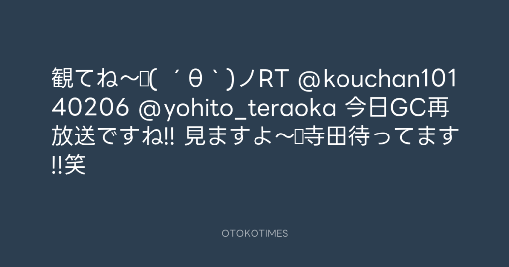 観てね〜♪( ´θ`)ノRT @kouchan10140206 @yohito_teraoka 今日GC再放送ですね!! 見... -