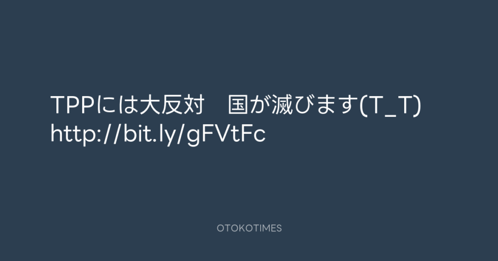 TPPには大反対 国が滅びます(T_T) http://bit.ly/gFVtFc