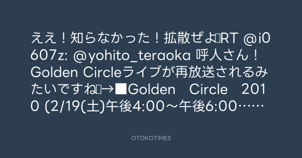 ええ!知らなかった!拡散ぜよ♪RT @i0607z: @yohito_teraoka 呼人さん!Golden Cir... -
