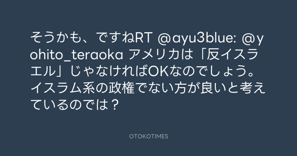 そうかも、ですねRT @ayu3blue: @yohito_teraoka アメリカは「反イスラエル」じゃ... -
