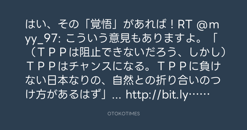 はい、その「覚悟」があれば!RT @myy_97: こういう意見もありますよ。「(TPP... -