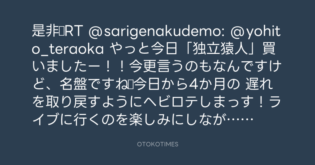 是非♪RT @sarigenakudemo: @yohito_teraoka やっと今日「独立猿人」買いましたー!... -