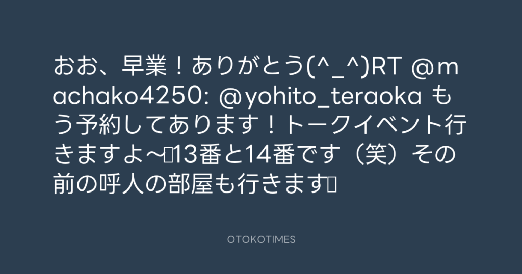 おお、早業!ありがとう(^_^)RT @machako4250: @yohito_teraoka もう予約してあり... -