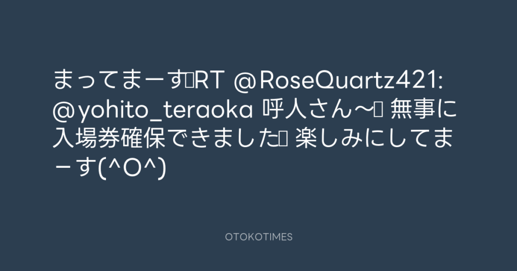 まってまーす♪RT @RoseQuartz421: @yohito_teraoka 呼人さん~☆ 無事に入場券確保... -