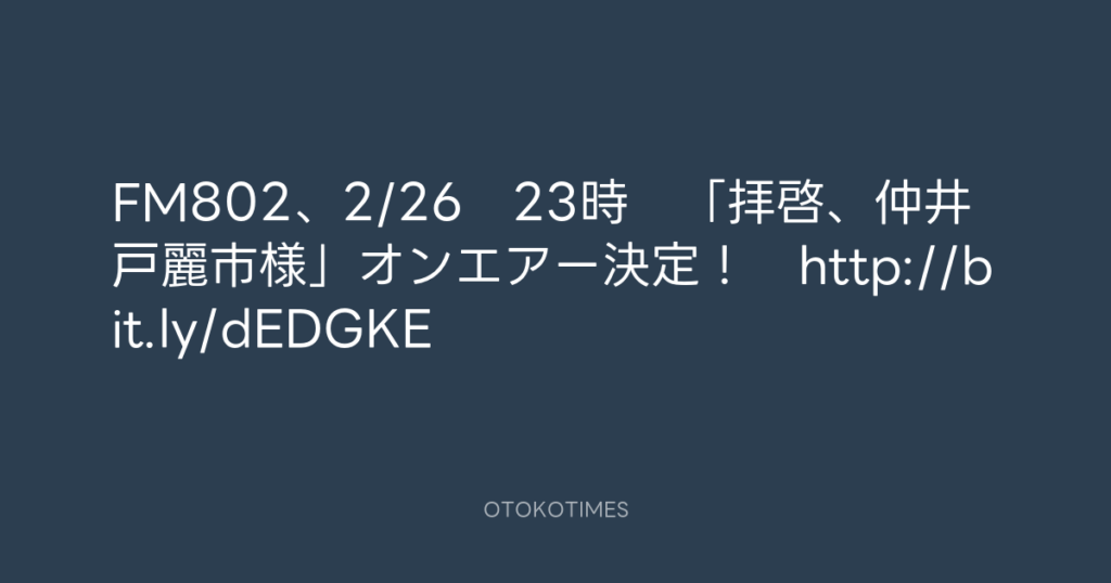 FM802、2/26 23時 「拝啓、仲井戸麗市様」オンエアー決定! http://bit.ly/dEDGKE -