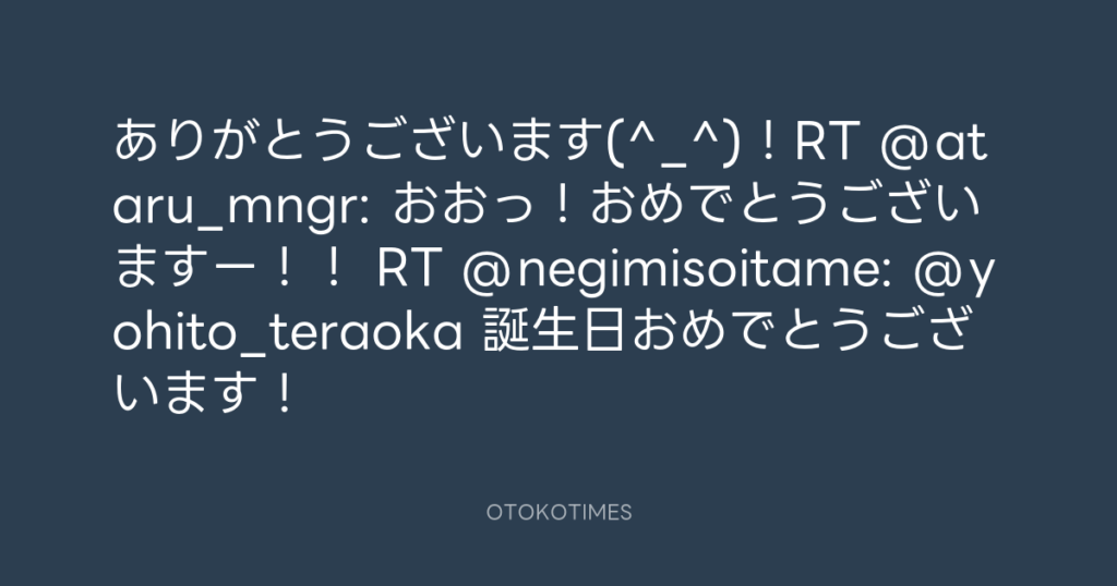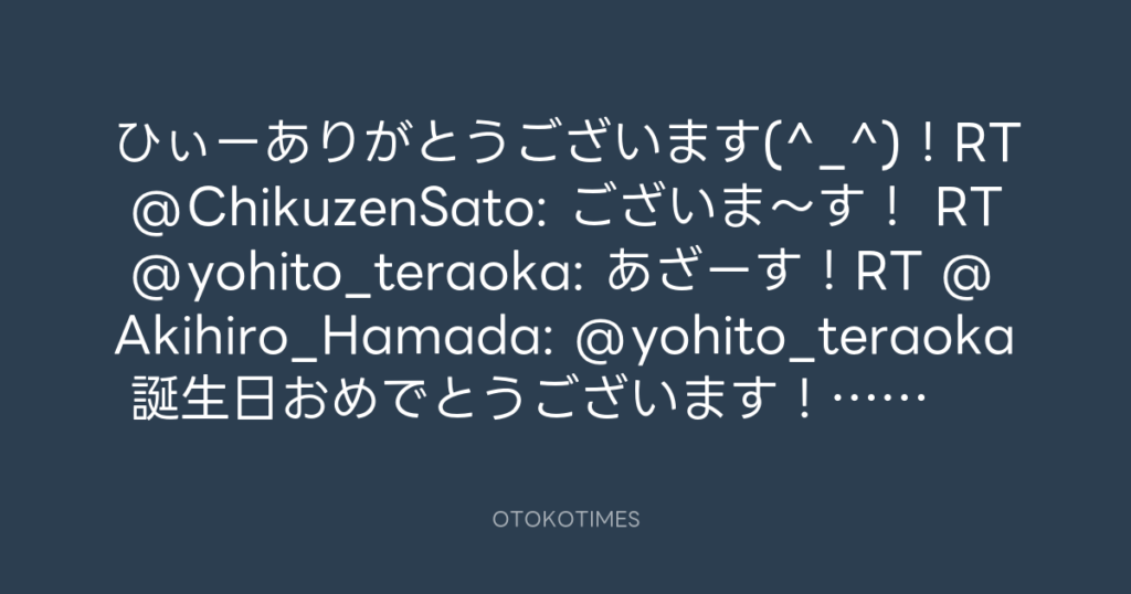 わちゃーあざーす!RT @osamu_sasaki: @yohito_teraoka お誕生日おめでとうござい... -