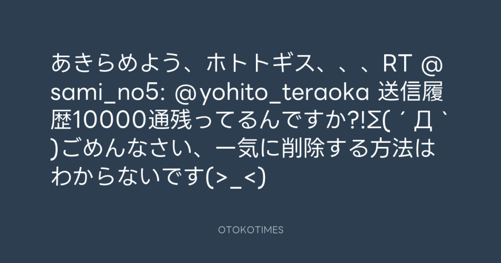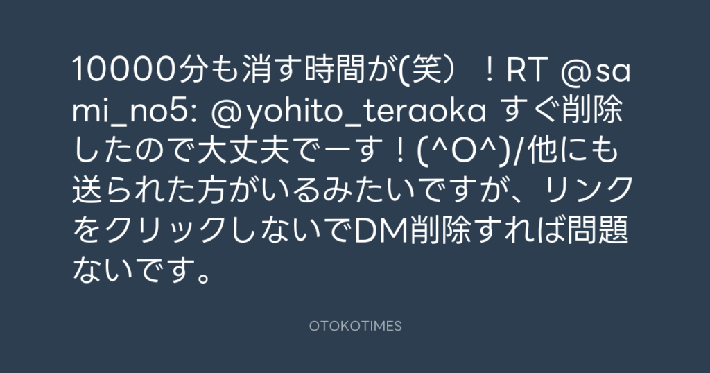 10000分も消す時間が(笑)!RT @sami_no5: @yohito_teraoka すぐ削除したので大丈... -