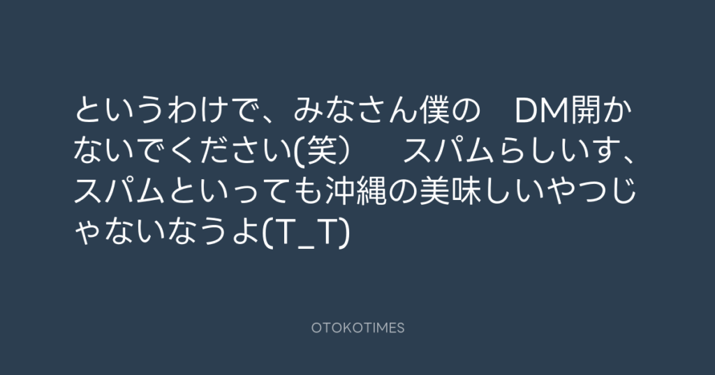 というわけで、みなさん僕の DM開かないでください(笑) スパムらしいす、スパム... -