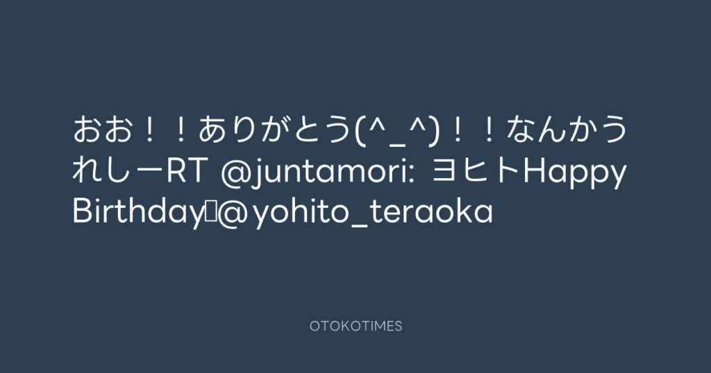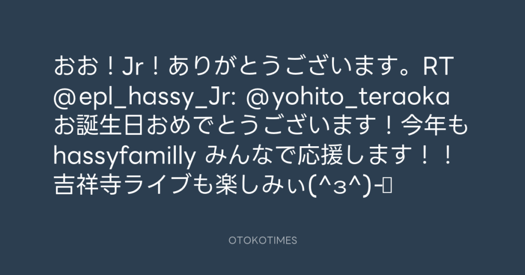 おお!Jr!ありがとうございます。RT @epl_hassy_Jr: @yohito_teraoka お誕生日お... -