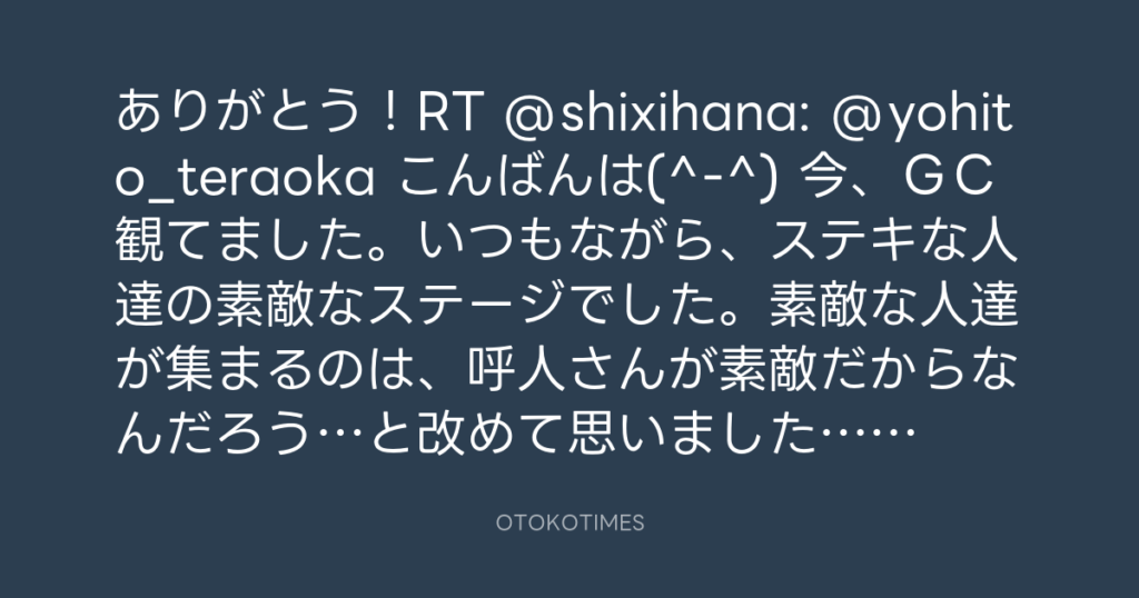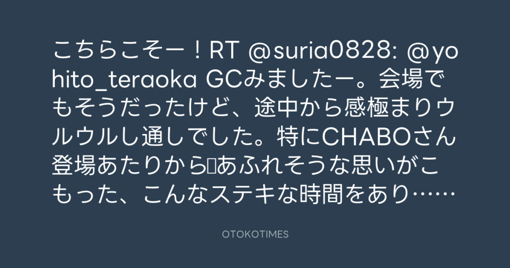 こちらこそー!RT @suria0828: @yohito_teraoka GCみましたー。会場でもそうだった... -