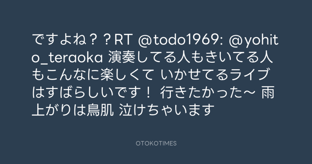 ですよね??RT @todo1969: @yohito_teraoka 演奏してる人もきいてる人もこんなに... -