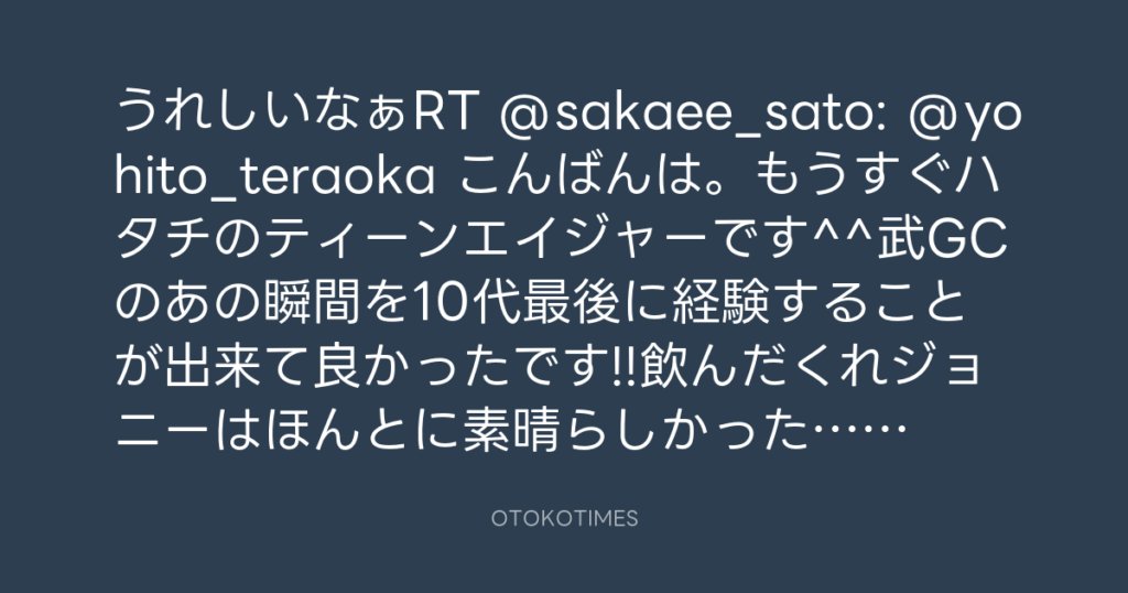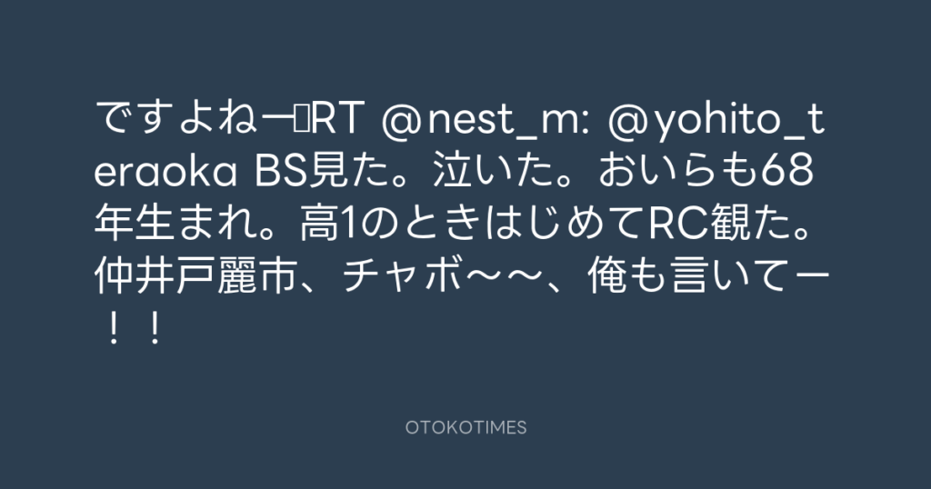 ですよねー♪RT @nest_m: @yohito_teraoka BS見た。泣いた。おいらも68年生まれ。高... -