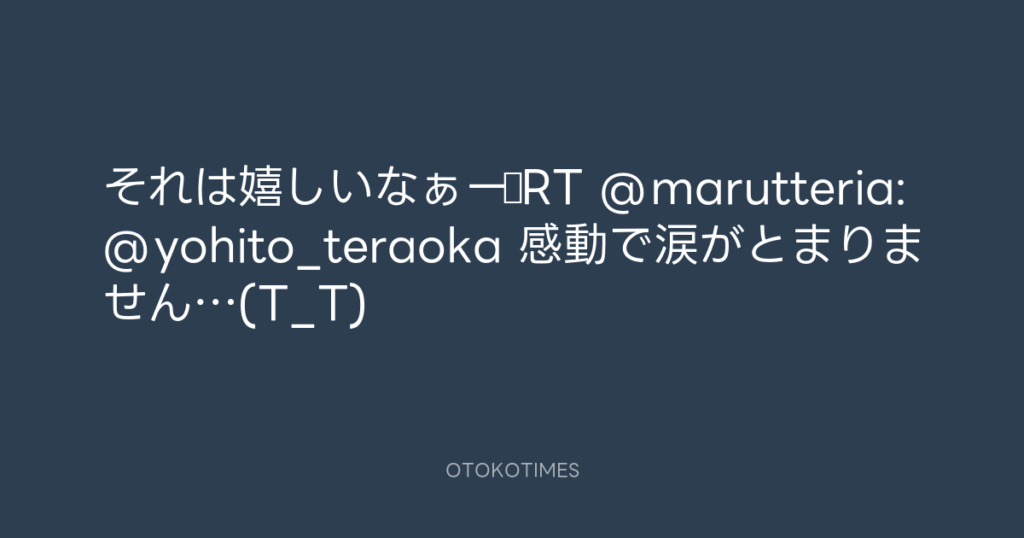 それは嬉しいなぁー♪RT @marutteria: @yohito_teraoka 感動で涙がとまりません…(T_T) -