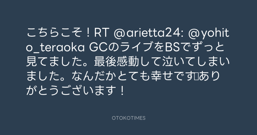 こちらこそ!RT @arietta24: @yohito_teraoka GCのライブをBSでずっと見てました。... -