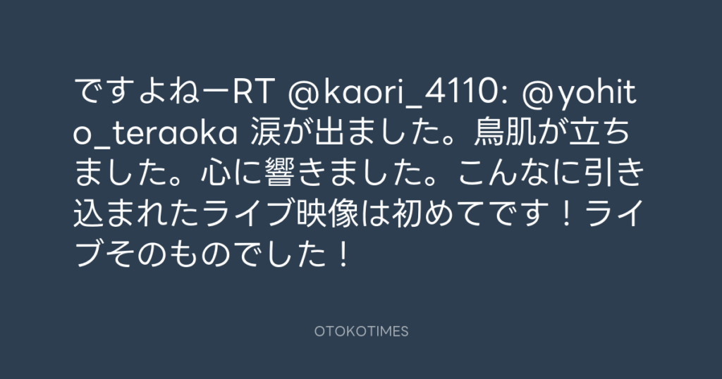 嬉しいっす♪RT @cyacochoco: @yohito_teraoka 感動しました!!ライブ映像で涙したこと... -
