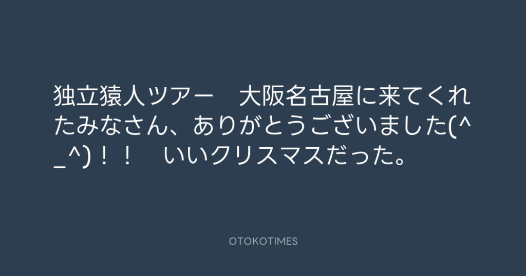 独立猿人ツアー 大阪名古屋に来てくれたみなさん、ありがとうございました(^_^)!...
