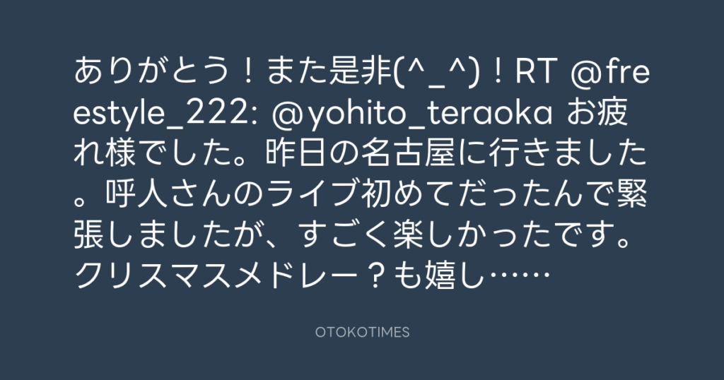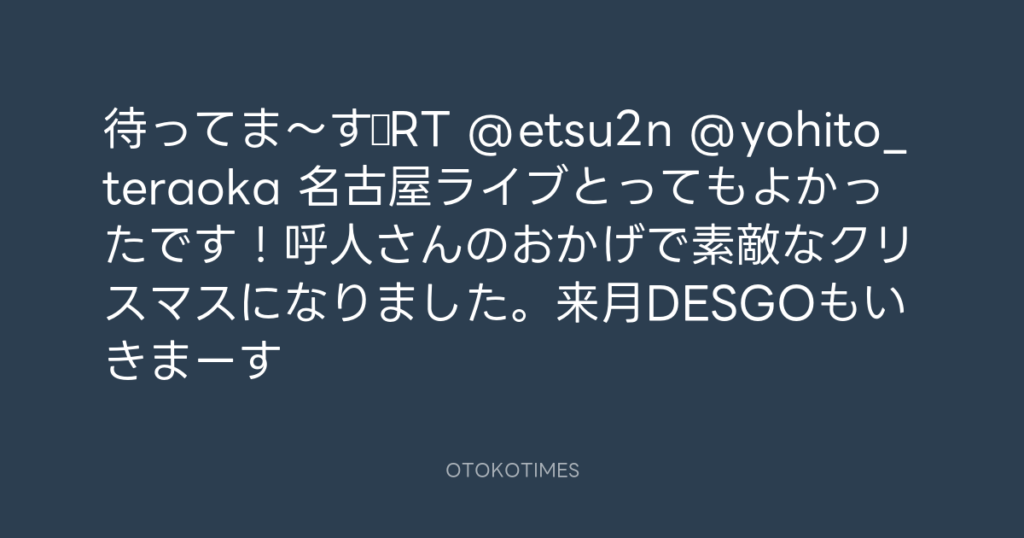 待ってま〜す♫RT @etsu2n @yohito_teraoka 名古屋ライブとってもよかったです!呼... -